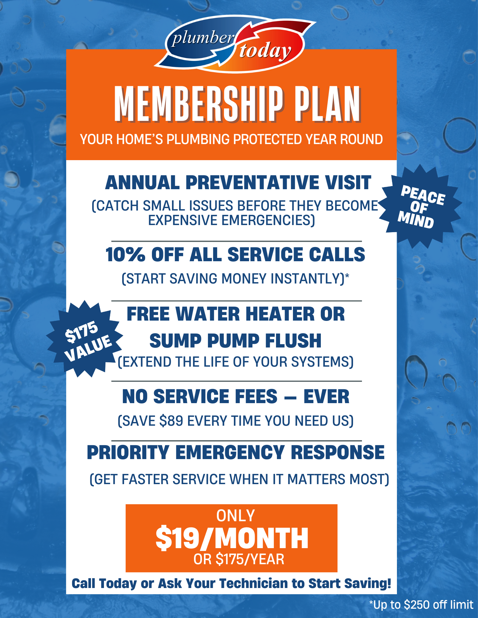 No charge for Plumber Today to come out and inspect any concern you have about your home